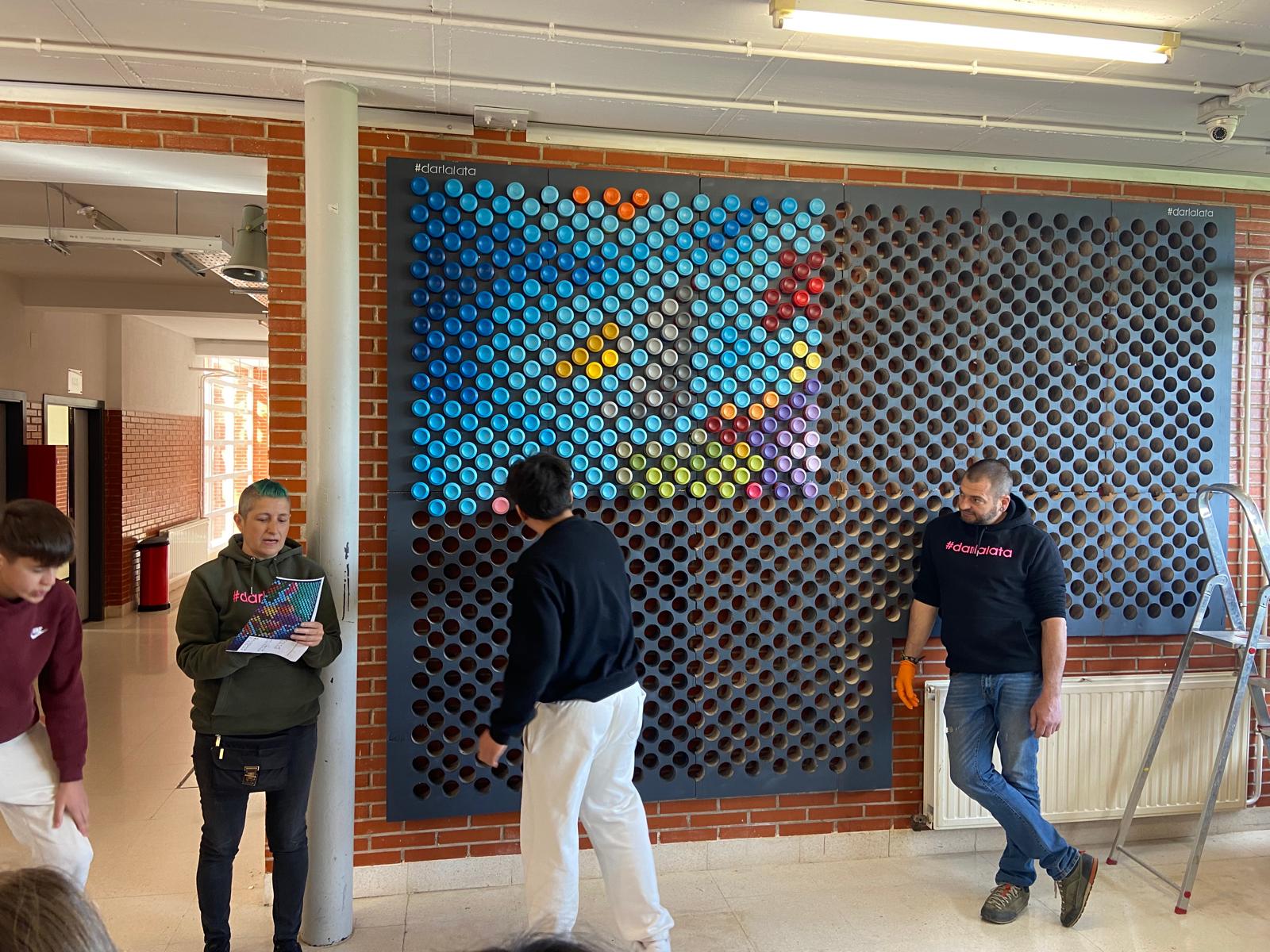 Esta obra artística fue llevada a cabo por la empresa DARLALATA en colaboración con el alumnado del centro, y pretende 3 objetivos: